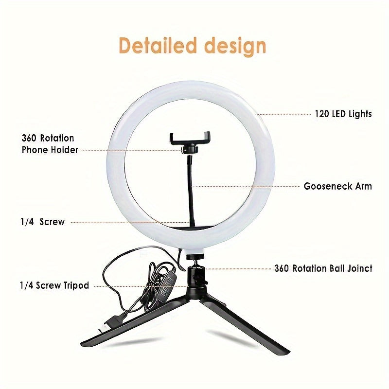Dimmable USB Ring Light with Tripod and Phone Holder for Photography and Streaming