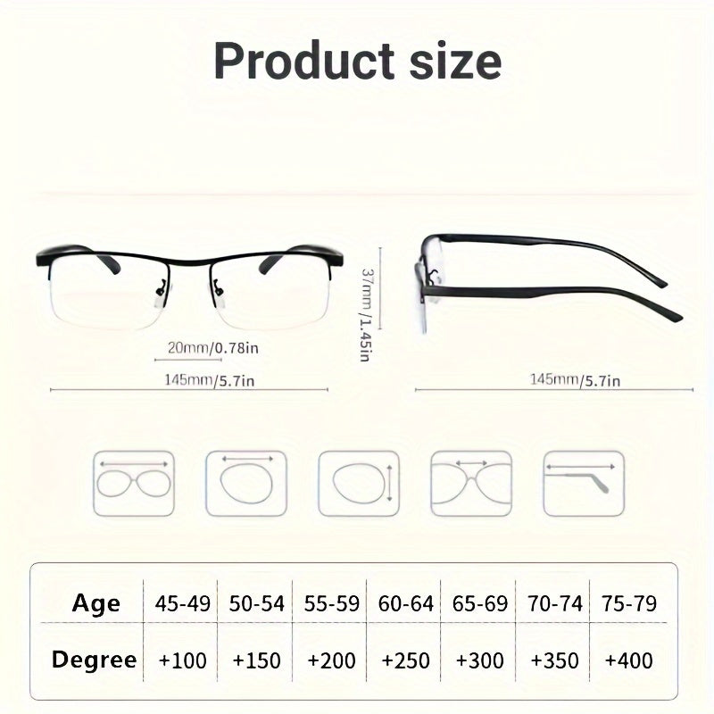 Unisex Progressive Multi-Focus Reading Glasses Rectangular Metal Frame in 3 Colors