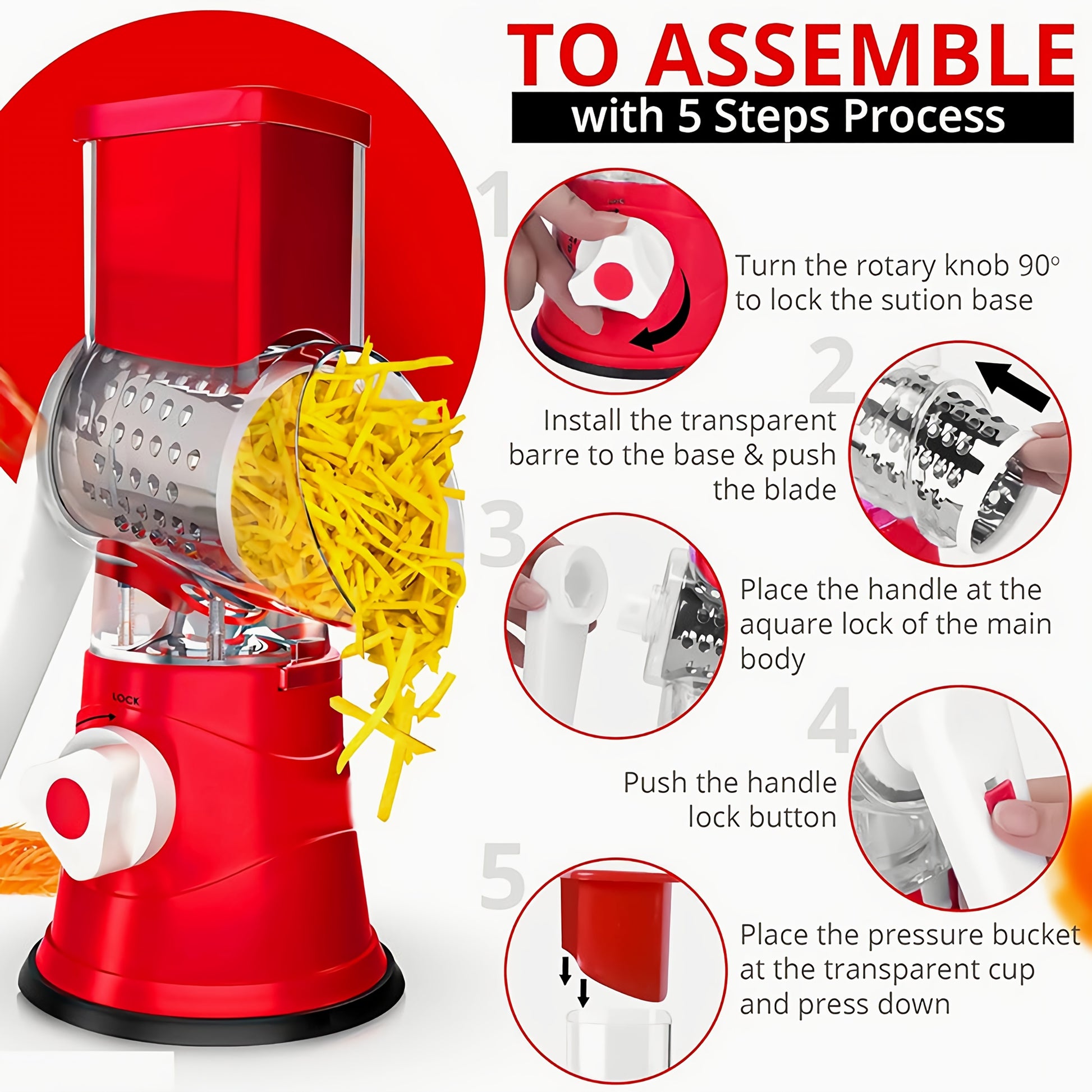 3-in-1 Manual Food Grater with Replaceable Blades for Cheese Vegetables Fruits