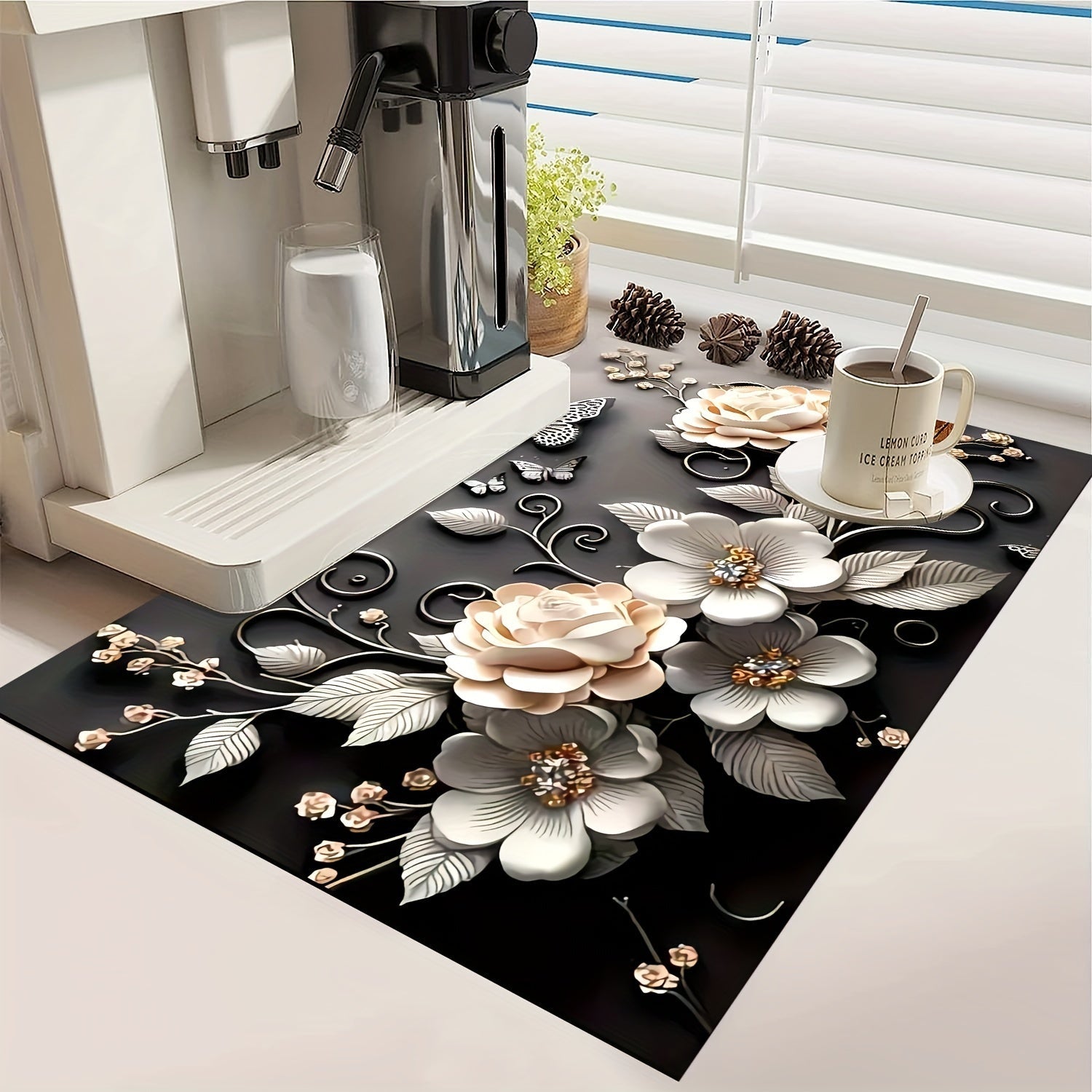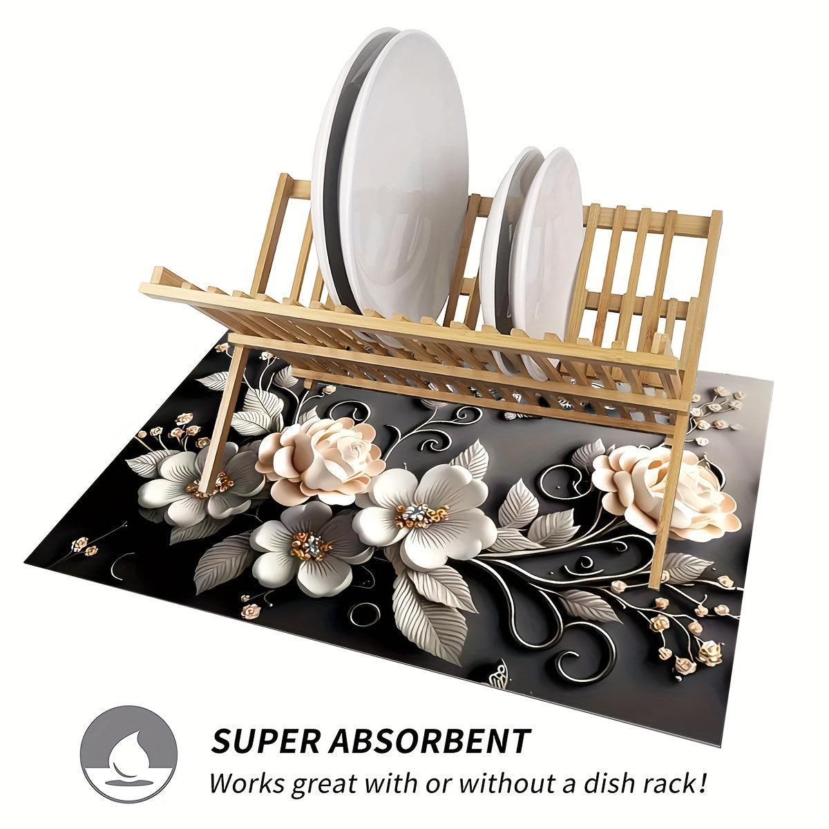 3D Floral Pattern Absorbent Silicone Mat for Kitchen Countertop Dish Drying Pad