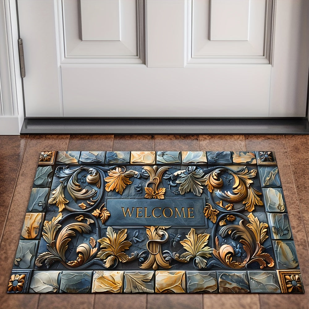 3D Stone Design Welcome Doormat Polyester Non-Slip Indoor Outdoor Rug