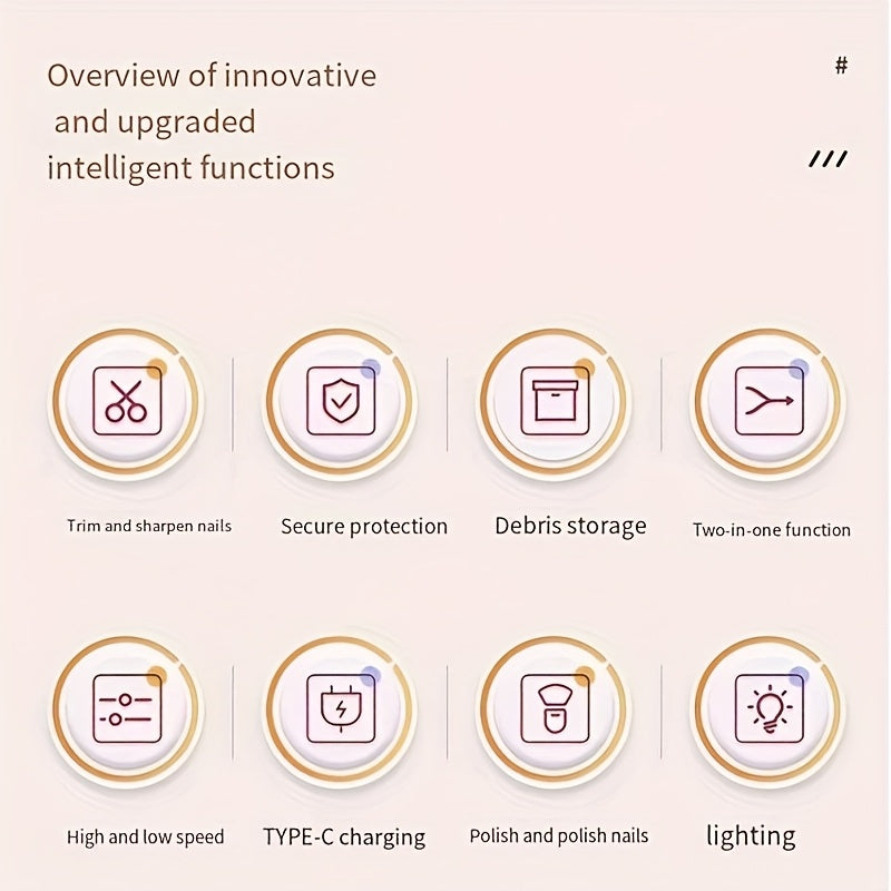 Portable Electric Nail Trimmer with USB Rechargeable Battery and LED Light
