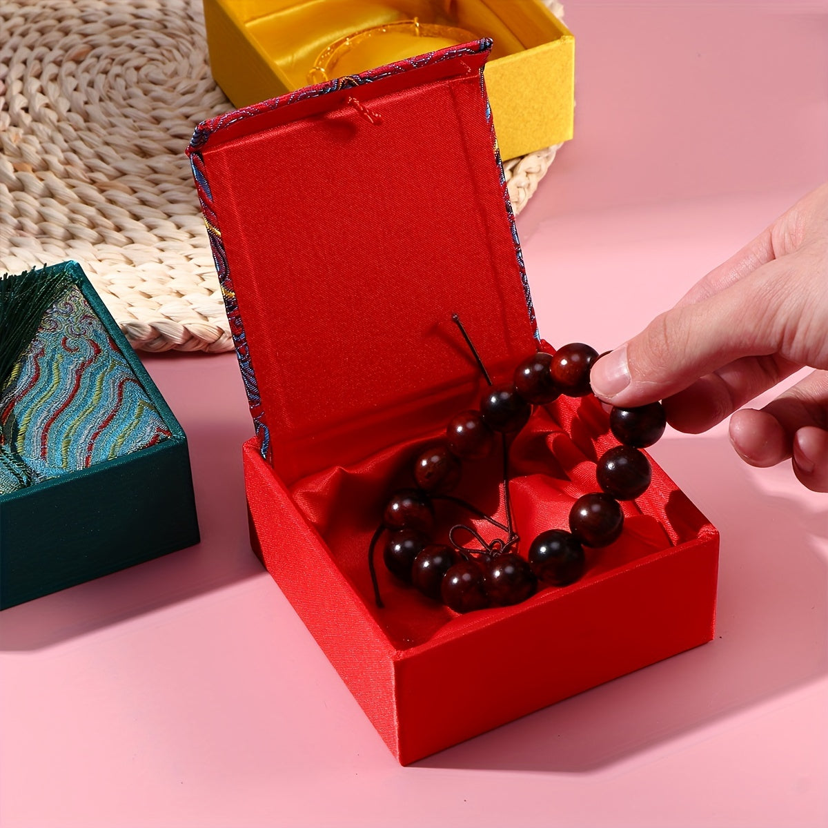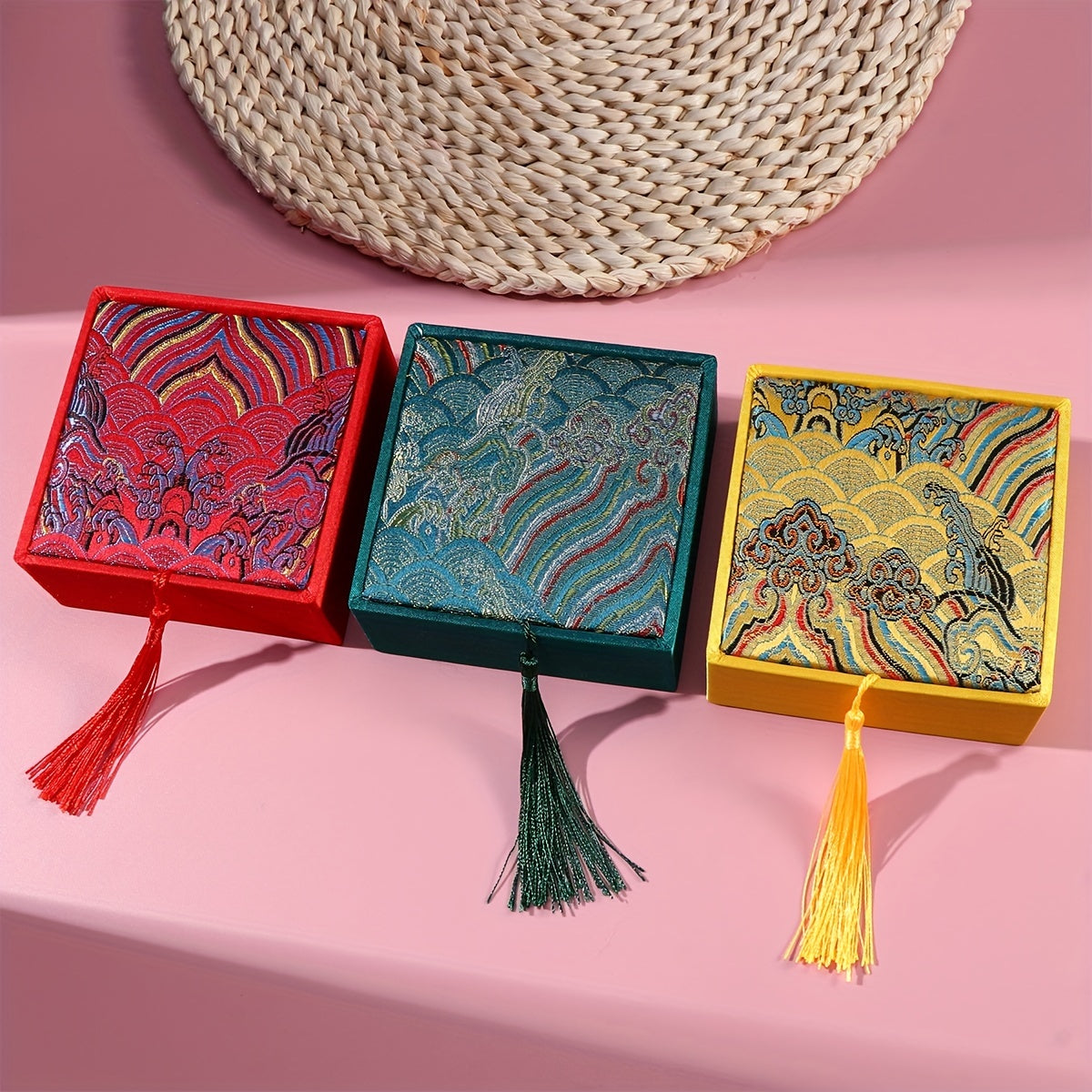 Chinese Style Storage Box with Tassel and Ancient Poetry Fabric Brocade for Jewelry Organizer