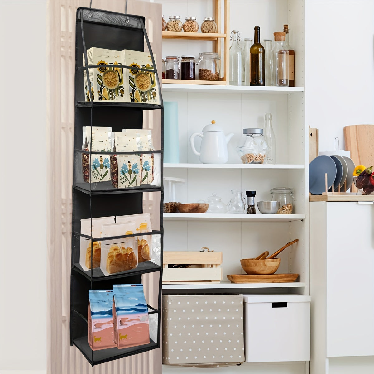 Over-the-Door Hanging Storage Organizer with 4 Shelves Waterproof Polyester for Bedroom Cloakroom