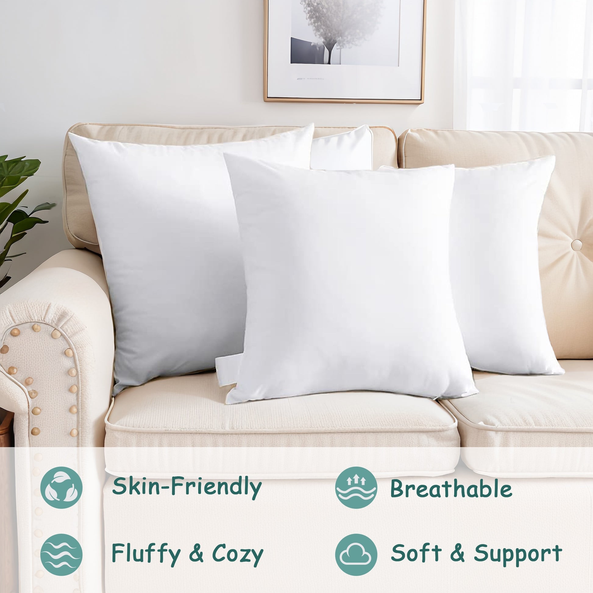 Standard Throw Pillow Insert with Washable Polyester Fiber Filling Zipper Closure for Couch Bed Sofa