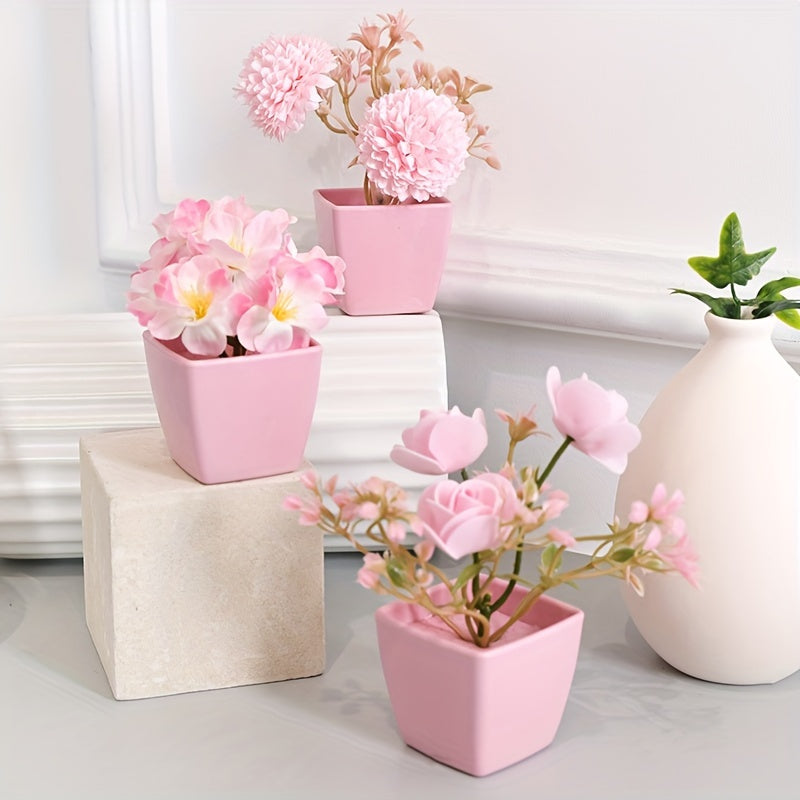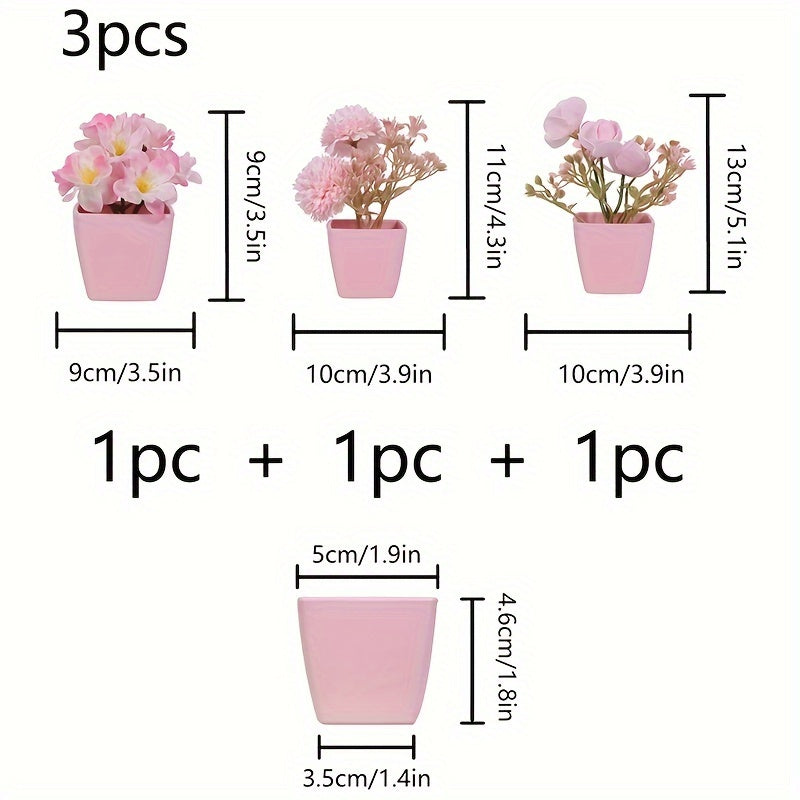 Set of 3 Mini Artificial Flower Arrangements for Wedding Home Office Decor Pink Peach Orchid