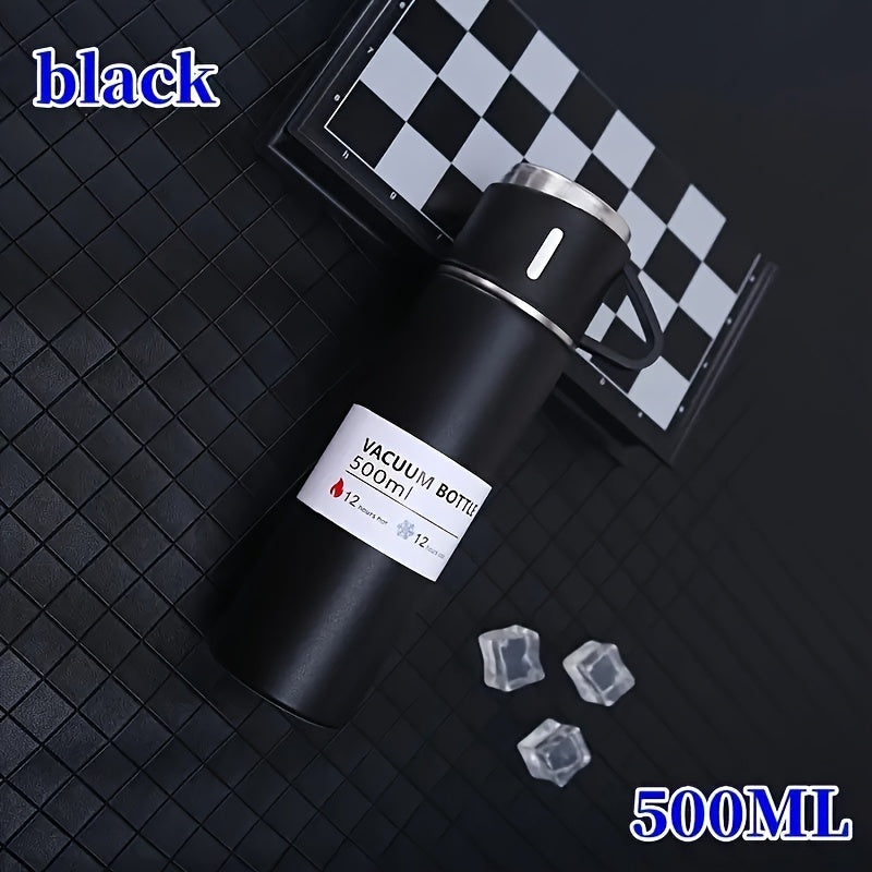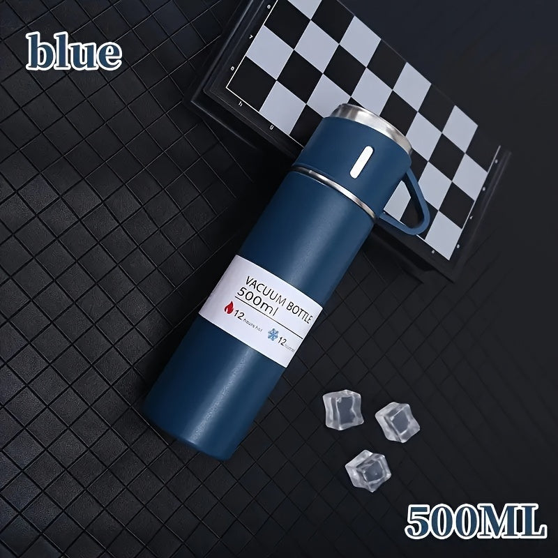 Set of Vacuum Insulated Water Bottles with 3 Cup Lids for Hot Cold Beverages