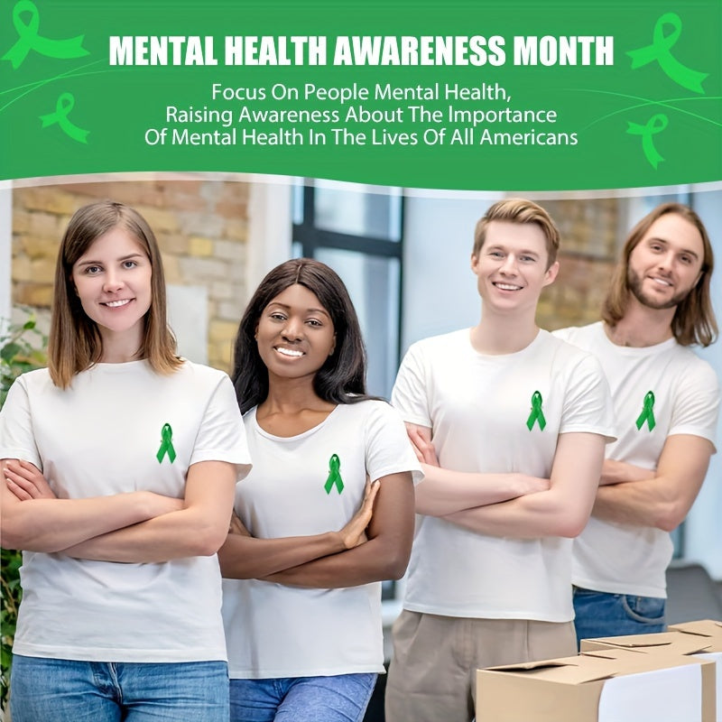 Green Ribbon Badges for Sports Teams Support Groups and Events 100 Pack