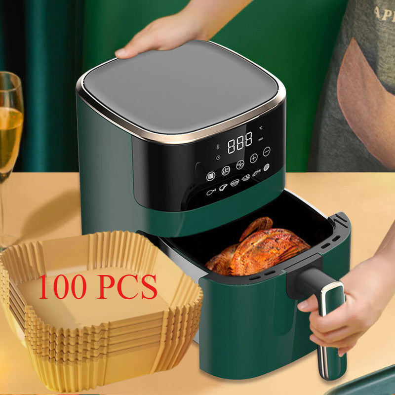100 Non-Stick Disposable Parchment Paper Liners for Air Fryers, Oil-Proof, Absorbent, 70 Count