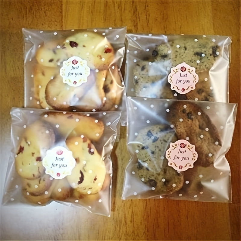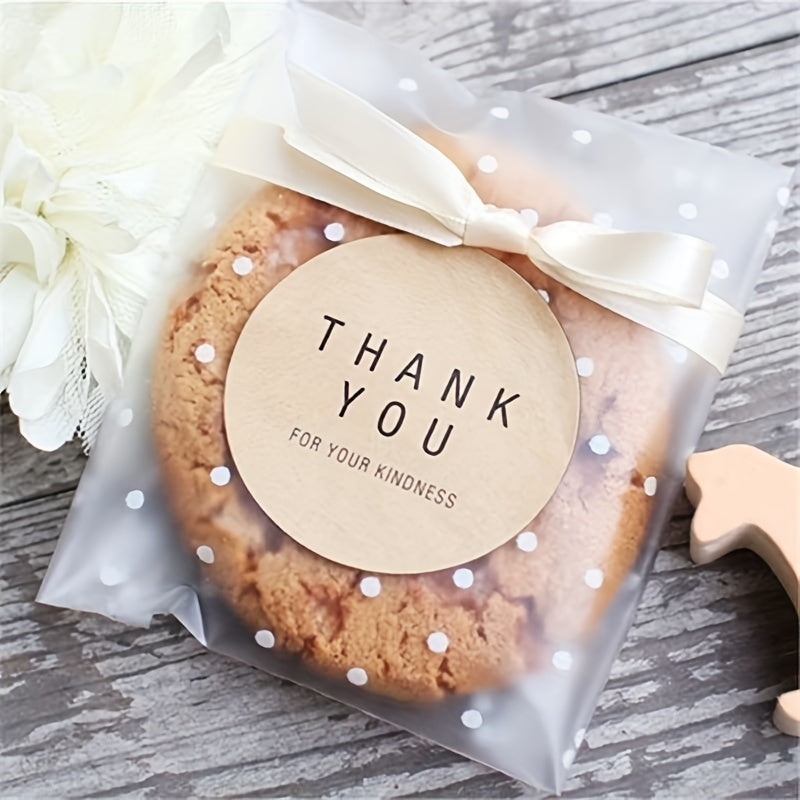 100 Pieces Frosted Self-Adhesive Clear Treat Bags with White Dots for Cakes Candies
