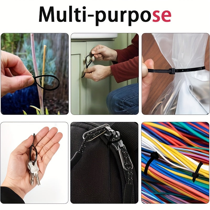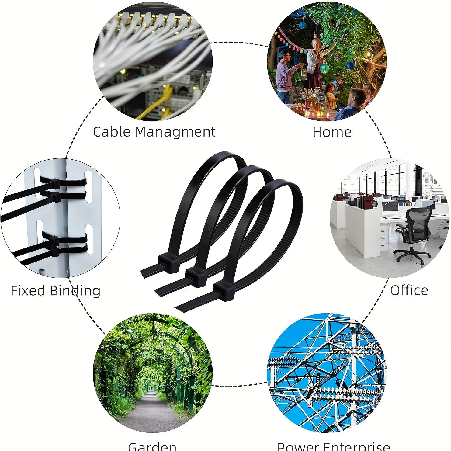 1000 Pack Black Nylon Cable Ties Assorted Sizes Water-Resistant UV-Resistant