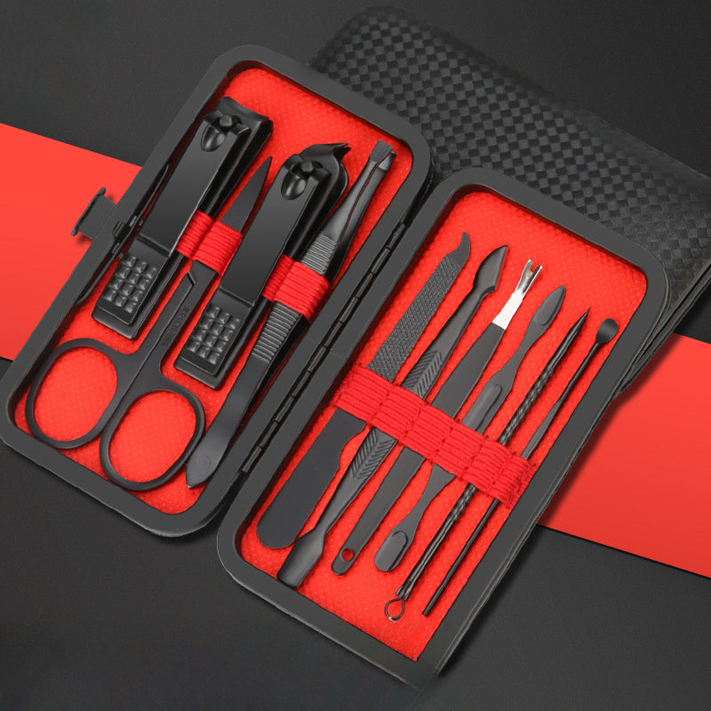 10pcs Nail Clippers Set Black Sturdy Fingernail Toenail Trimmers Pedicure Tools