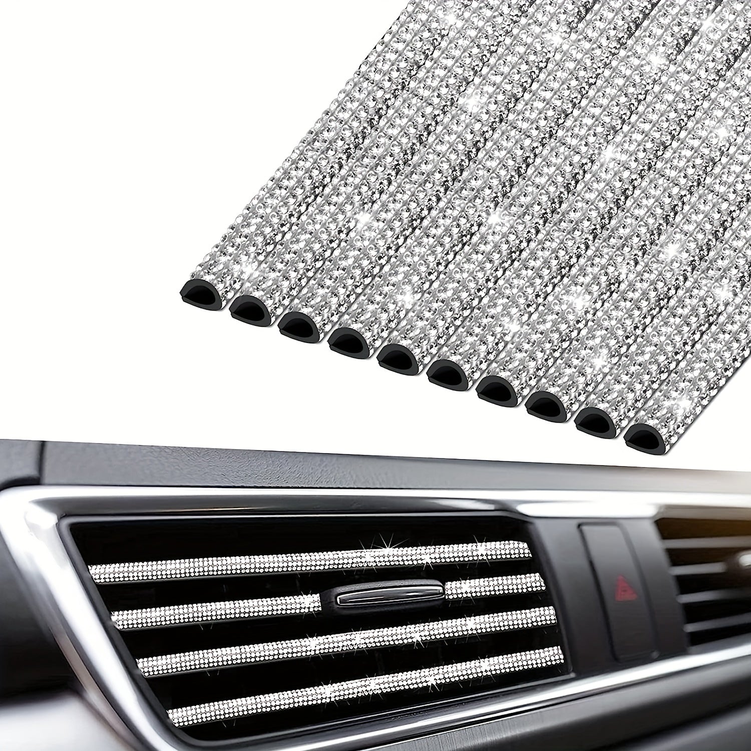 10pcs Pink Rhinestone Car Vent Trim Strips Durable Plastic Air Conditioner Outlet Decorations