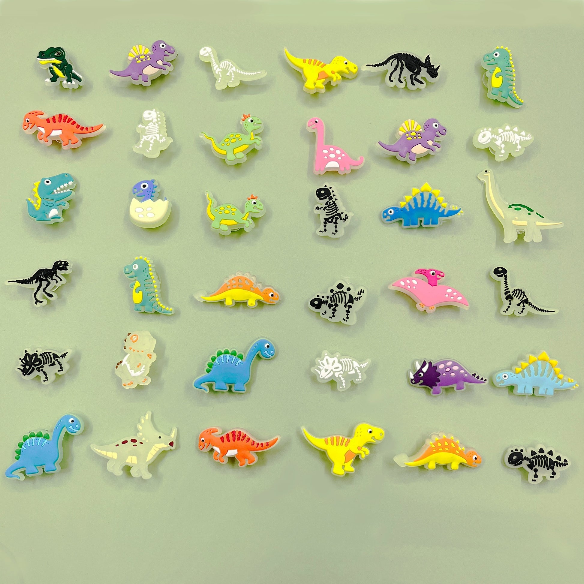 12-Pack Glow-in-the-Dark Dinosaur Charms PVC Craft Jewelry Decorations