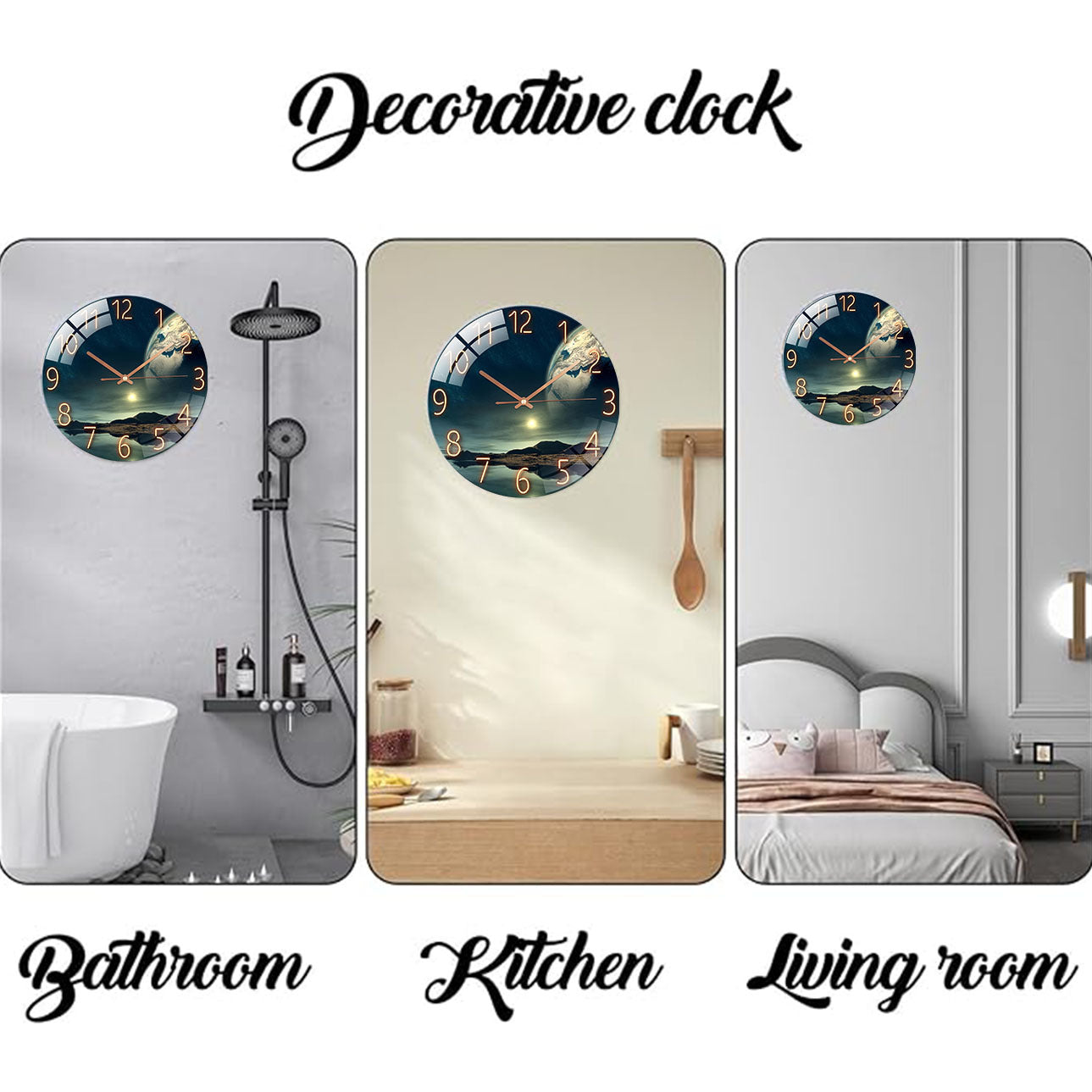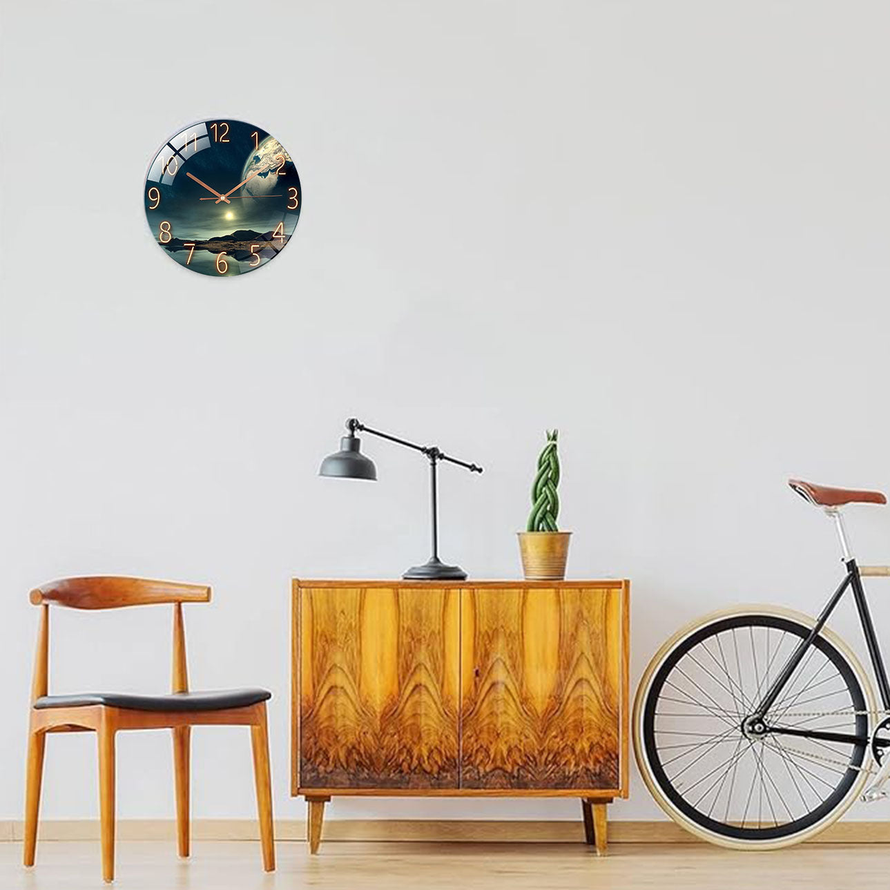 12 Inch Round Glass Wall Clock Earth Landscape Silent Battery Operated Modern Decor