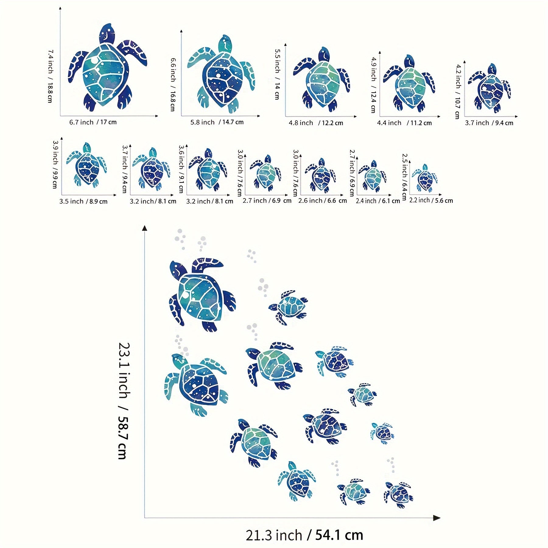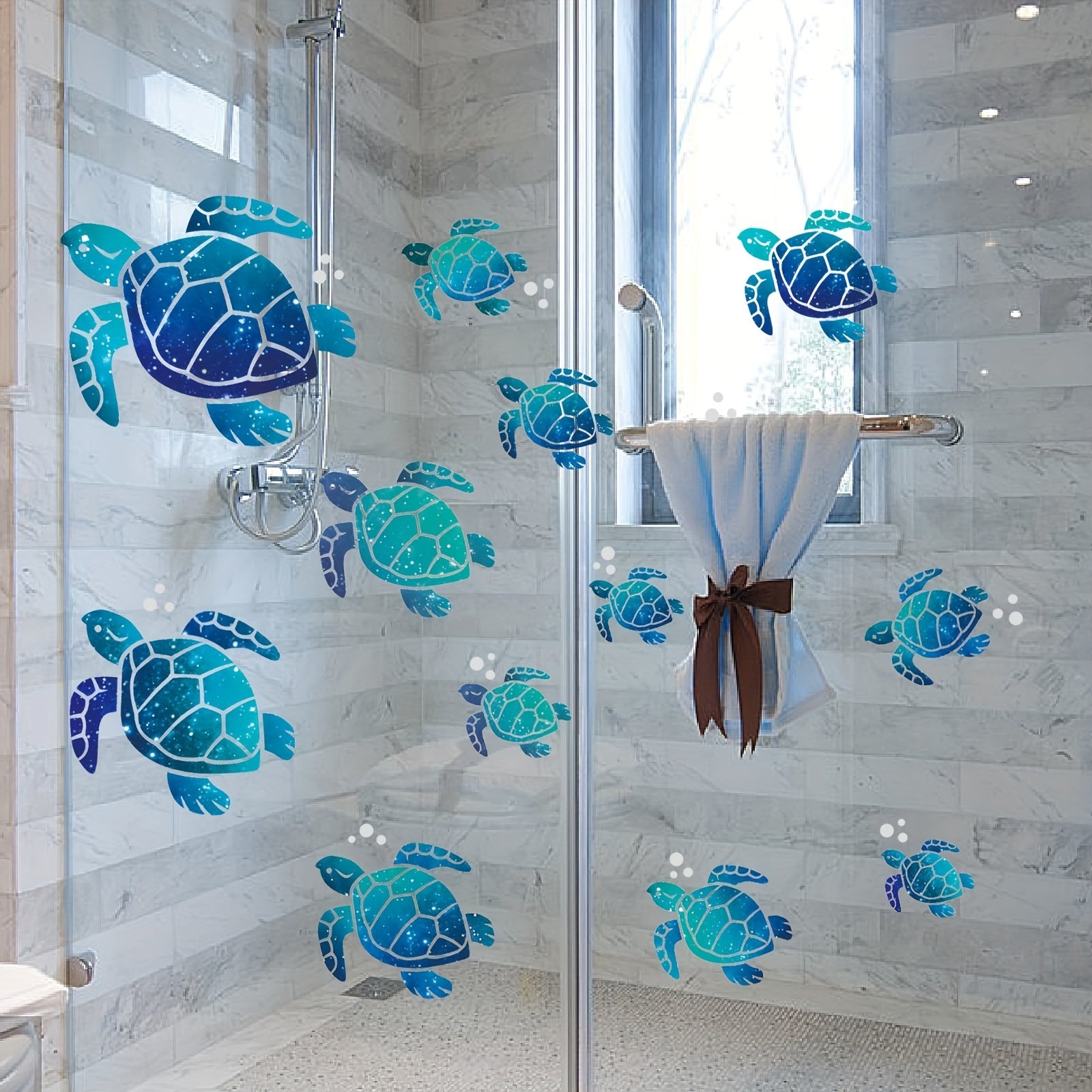 Undersea World Blue Sea Turtle Wall Decals Waterproof Ocean Vinyl Stickers for Bathroom and Home