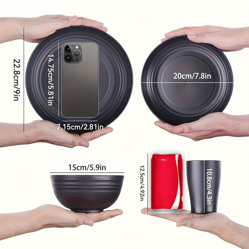 16-Piece Unbreakable Wheat Straw Plastic Dinnerware Set Microwave Dishwasher Safe Reusable Tableware