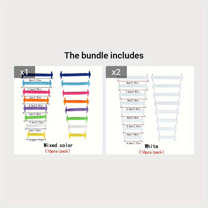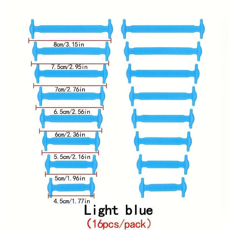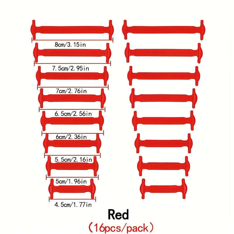 16PCS Elastic Silicone No-Tie Shoelaces with Clips for Sneakers and Athletic Shoes
