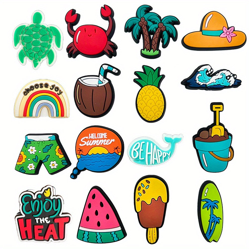16pcs Summer Beach Shoe Charms PVC Turtle Palm Tree Fruit Sneakers Sandals