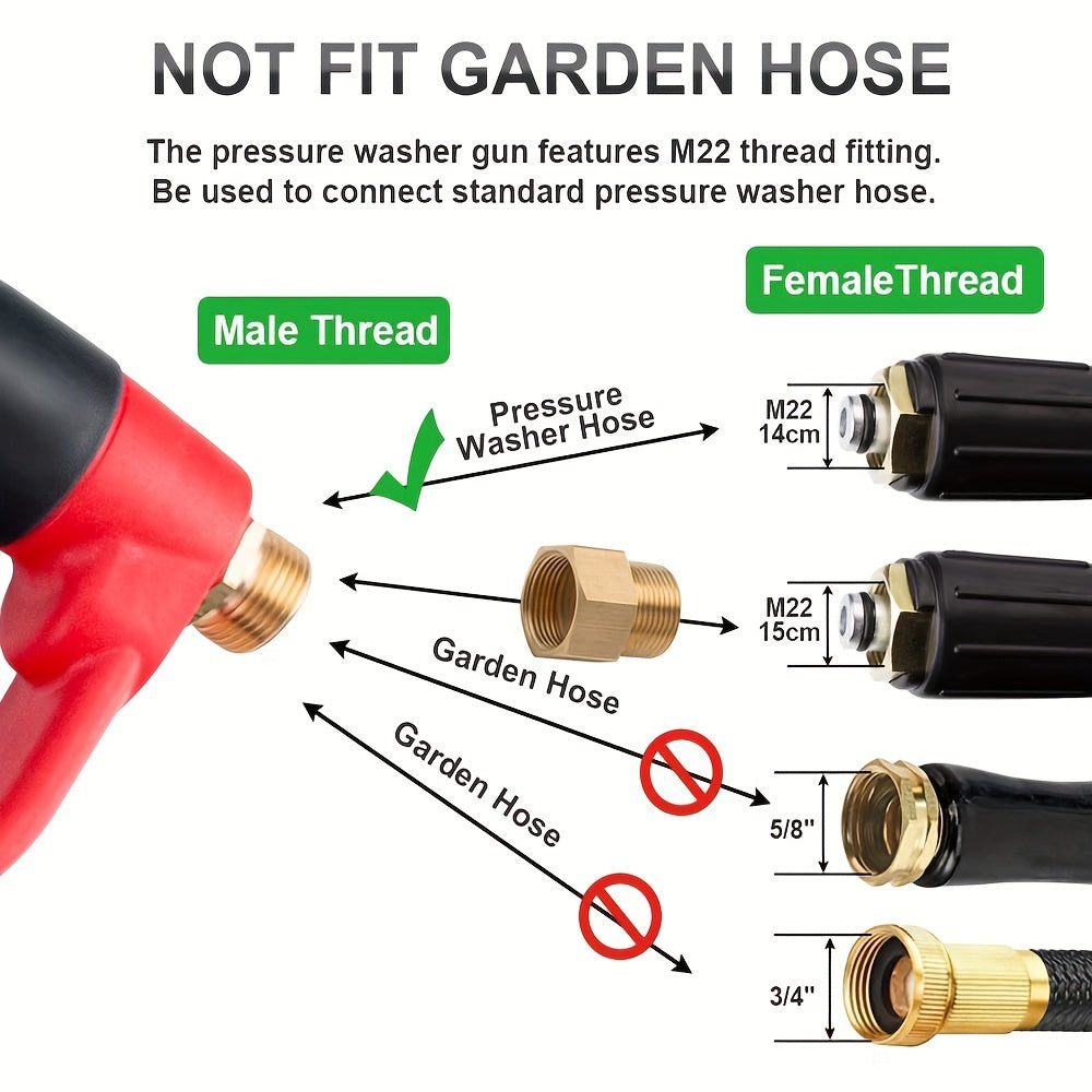 High Pressure Washer Gun with Extension Rod Nozzle Tips 5000 PSI Brass Metal