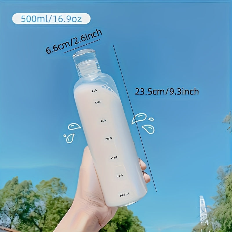 BPA-Free Reusable Water Bottle with Time Marker Leakproof Lightweight 16.9 oz for Gym Hiking Sports