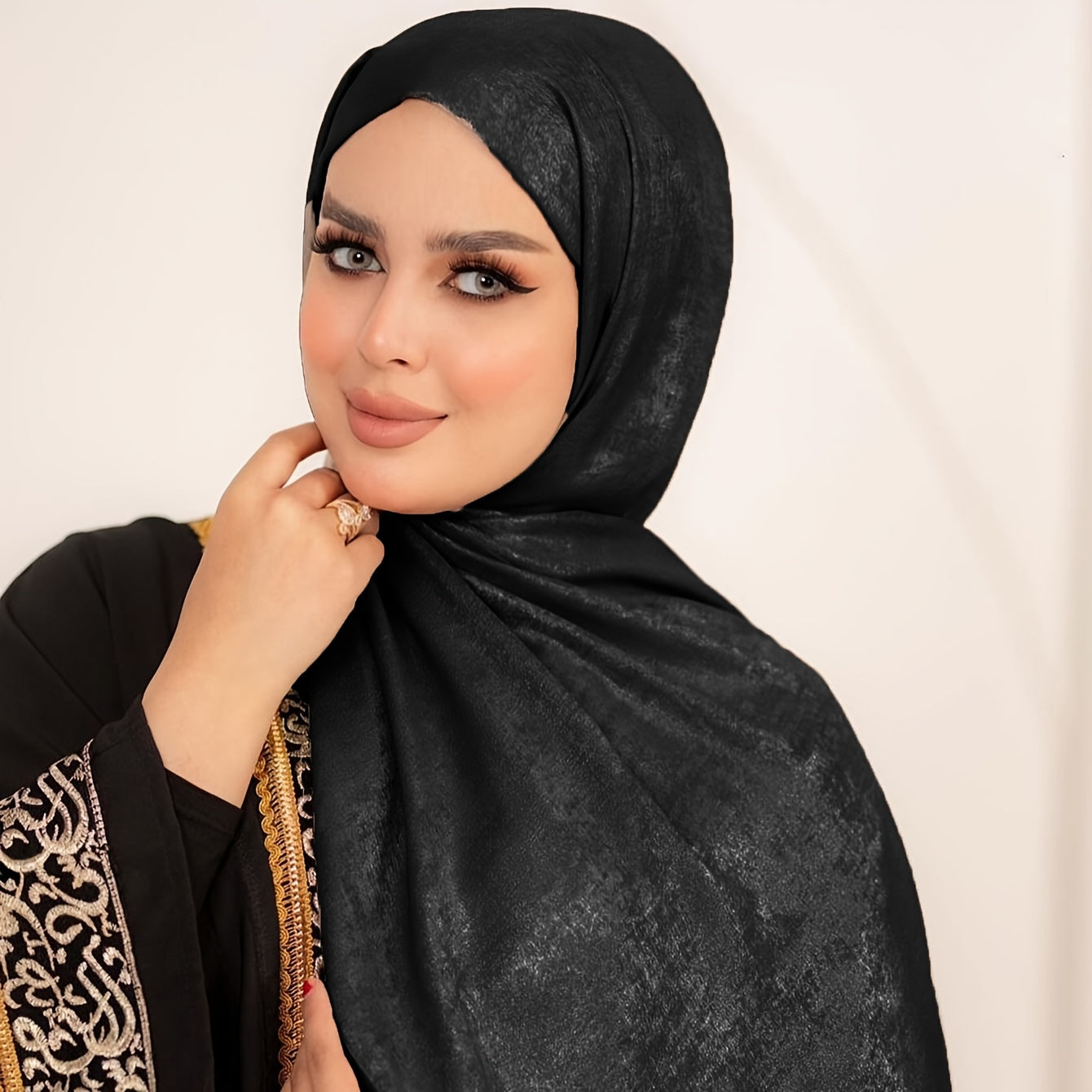 Velvet Satin Hijab for Women in Khaki Light Blue Lotus Black Breathable Woven Polyester