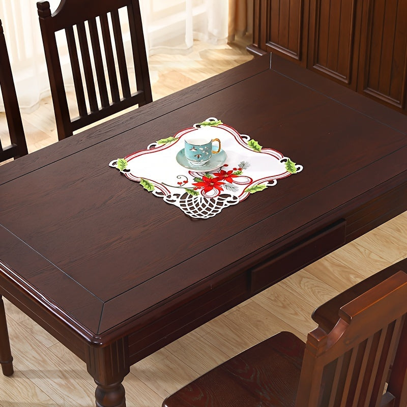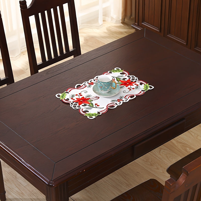 Christmas Embroidered Table Runner, Hand Hollowed, Holiday Decor, Dining Room