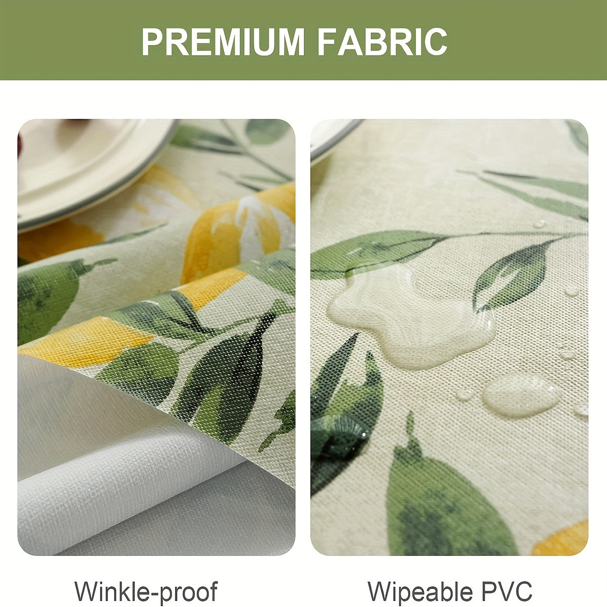 Vinyl Tablecloth Waterproof Oil-Resistant Rectangular Lemon Leaf Pattern for Kitchen Dining