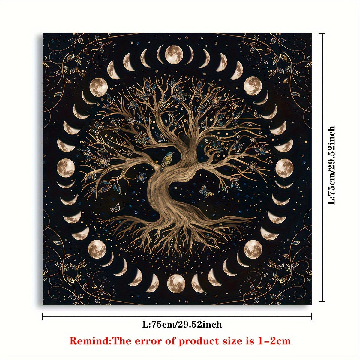 Tarot Tablecloth with Life Tree and Moon Phase Designs for Readings and Decor
