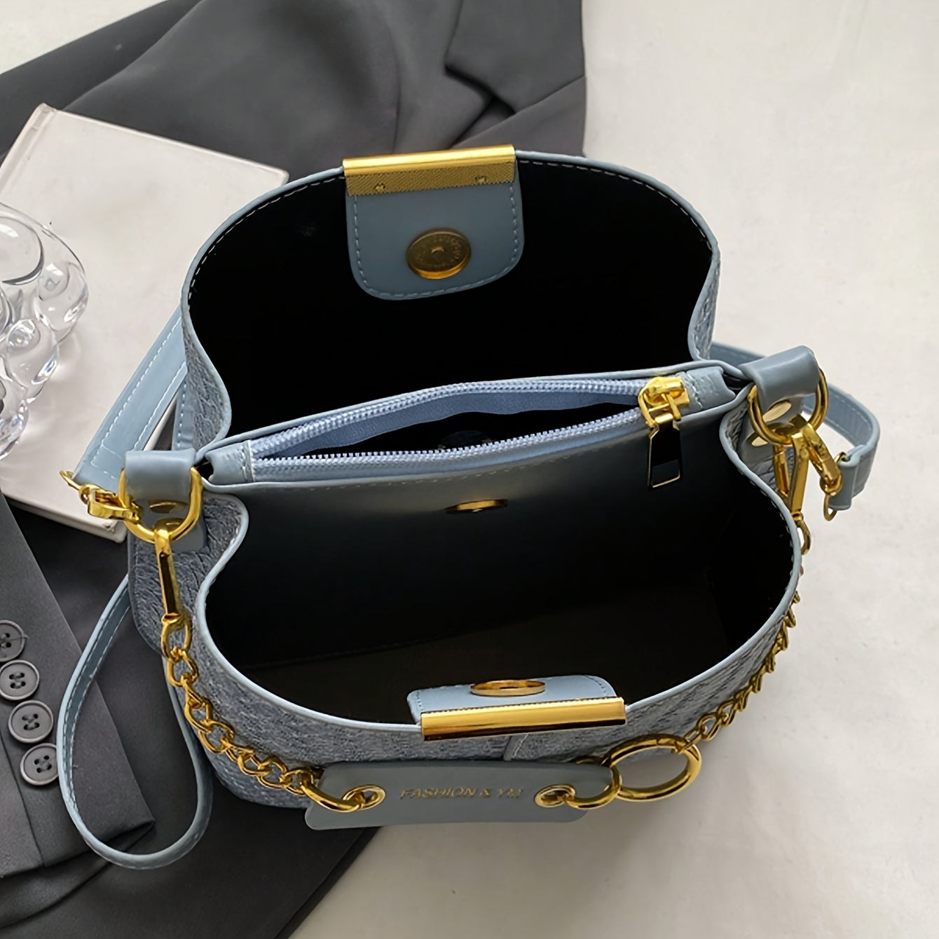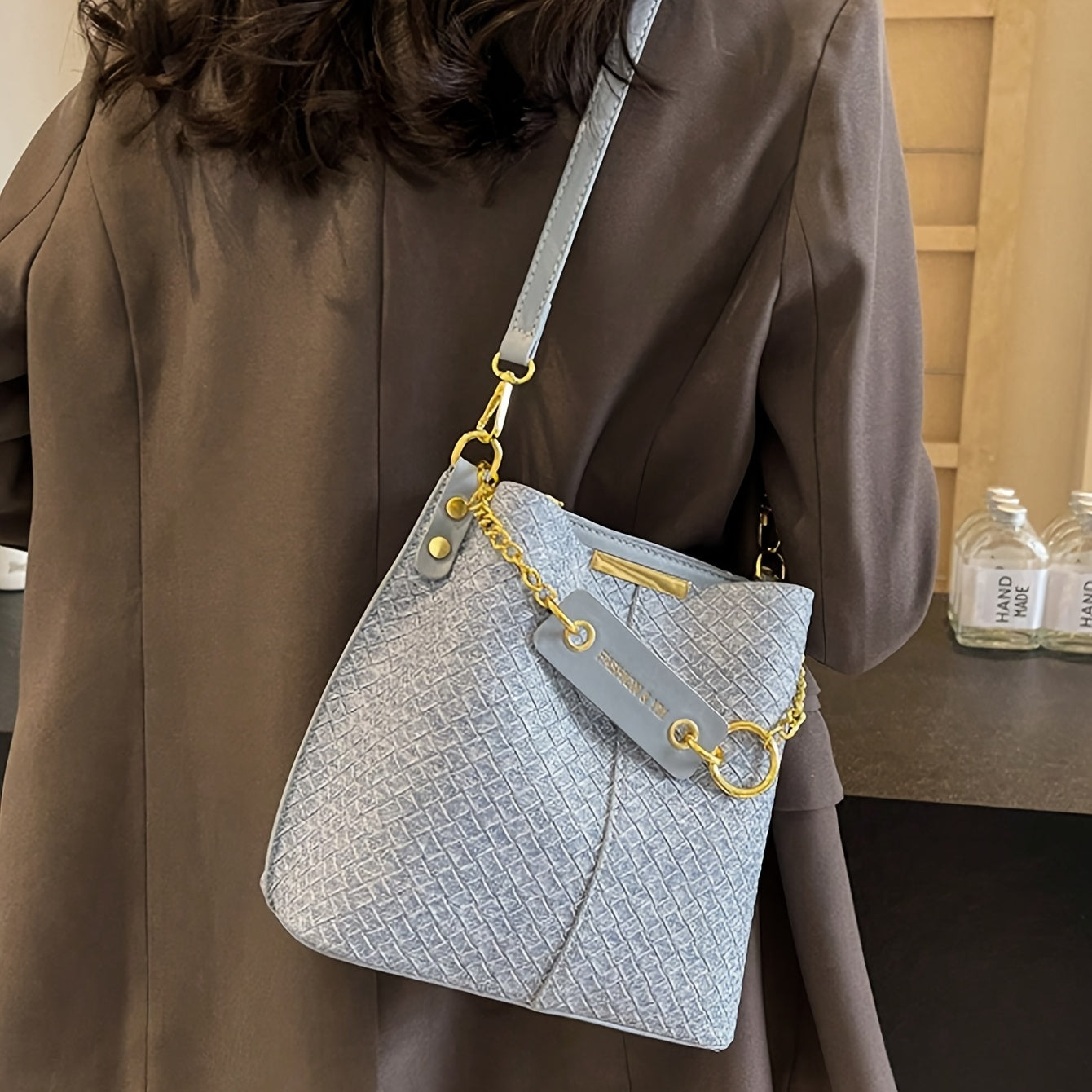 Women's Blue Plaid PU Crossbody Bag with Adjustable Shoulder Strap for Work and Casual Use
