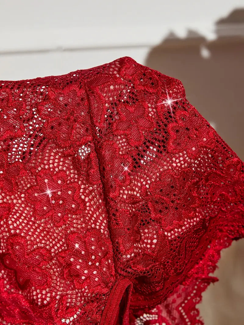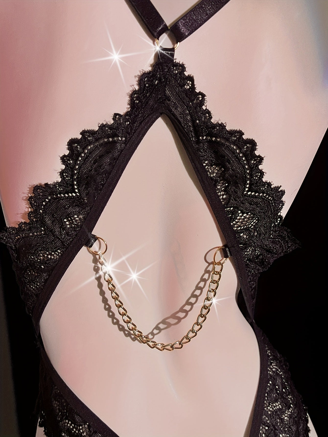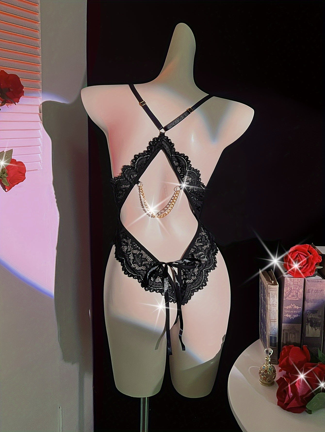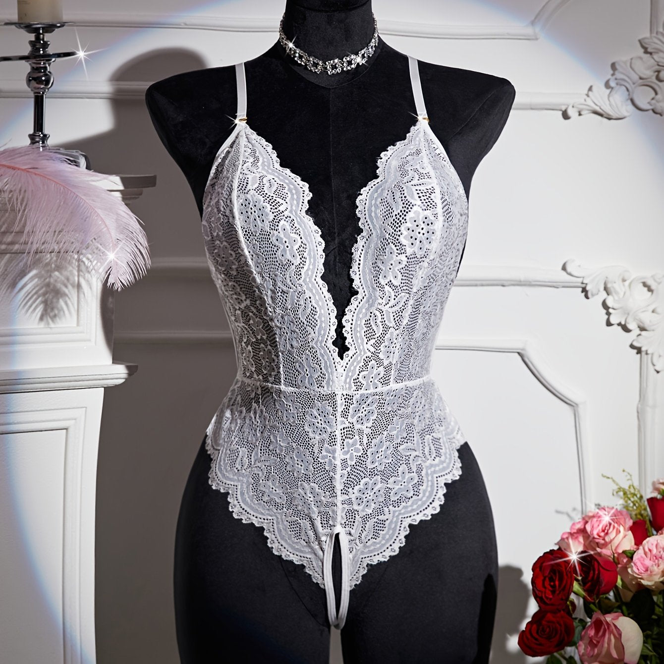 Women's Lace Bodysuit Deep V-Neck Open Crotch High Waist Lingerie