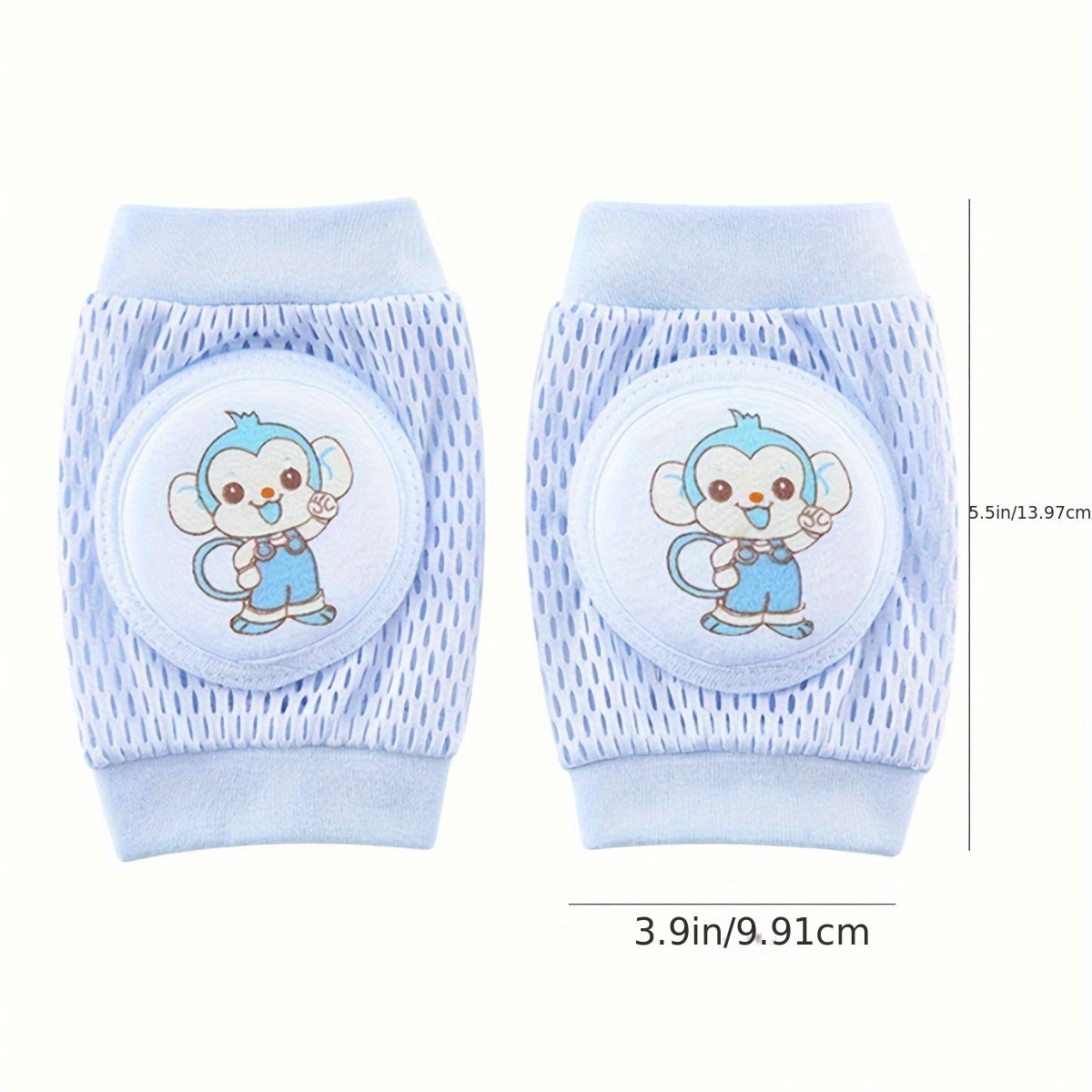 Baby Toddler Knee Protectors Set of 2 Cotton Crawling Knee Pads for 0+ and 3+ Blue Monkey Design