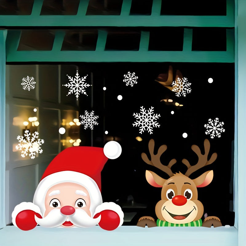 Christmas Window Clings Set with Santa Elk Snowflake Decorations for Holiday Decor