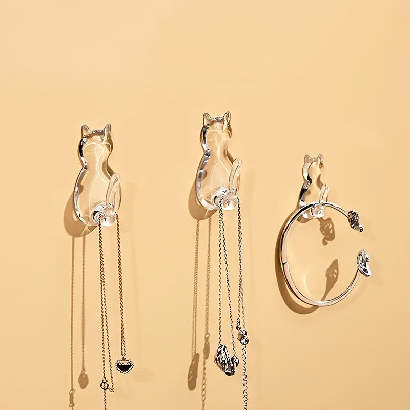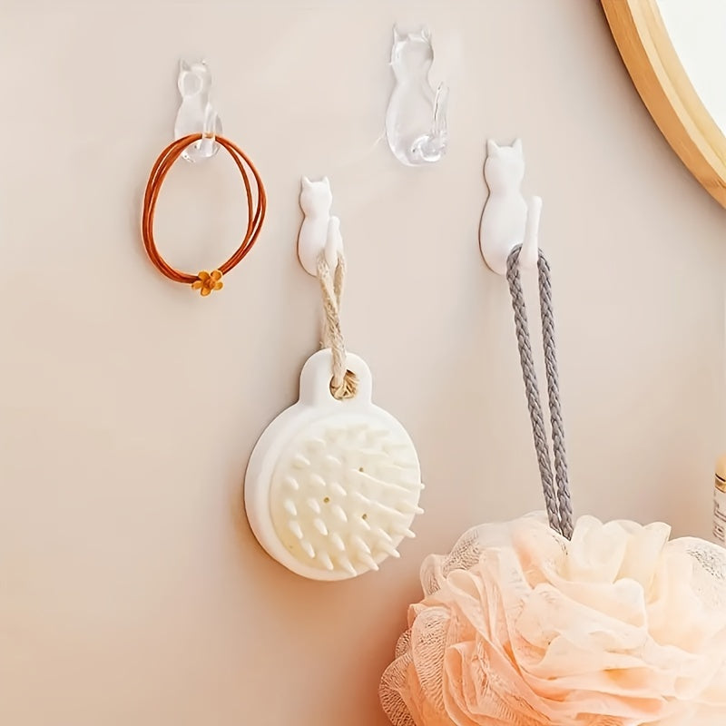 Cute Cartoon Cat Adhesive Hooks for Coats Towels Shower Curtains Strong Transparent No Damage Bathroom Decor