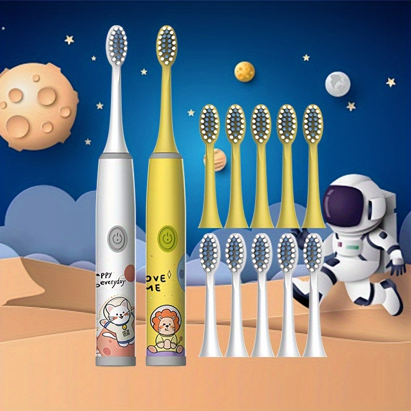 Electric Toothbrushes for Kids 3-13 with 12 Brush Heads Cartoon Space Series Battery Powered Gentle Bristles 2-Minute Timer