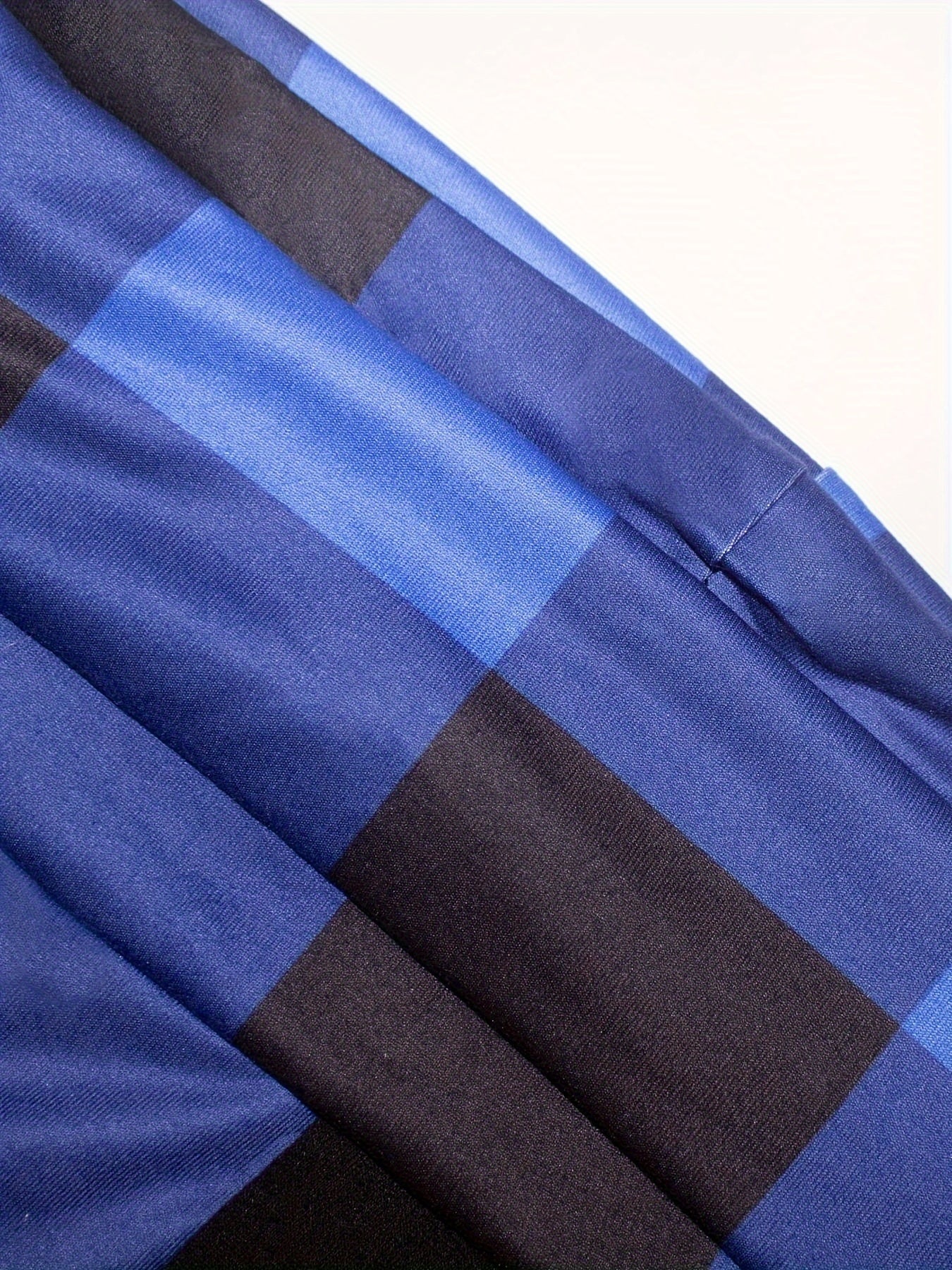 Plus Size Women's Gingham Plaid T-Shirt with Cowl Neck and Button Details