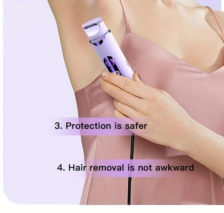 2-in-1 Women's Electric Shaver for Face, Legs, Underarms Rechargeable Cordless Pink Purple