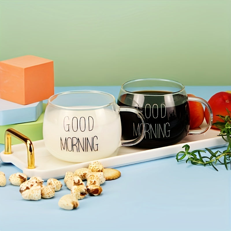 Set of 2 Nordic Glass Cups for Coffee Cereal Milk Tea Transparent Stylish
