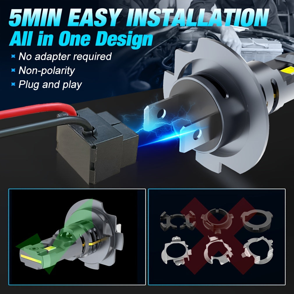 2 Pack LED Car Headlight Bulbs H7 60W 20000lm Bright White 6500K