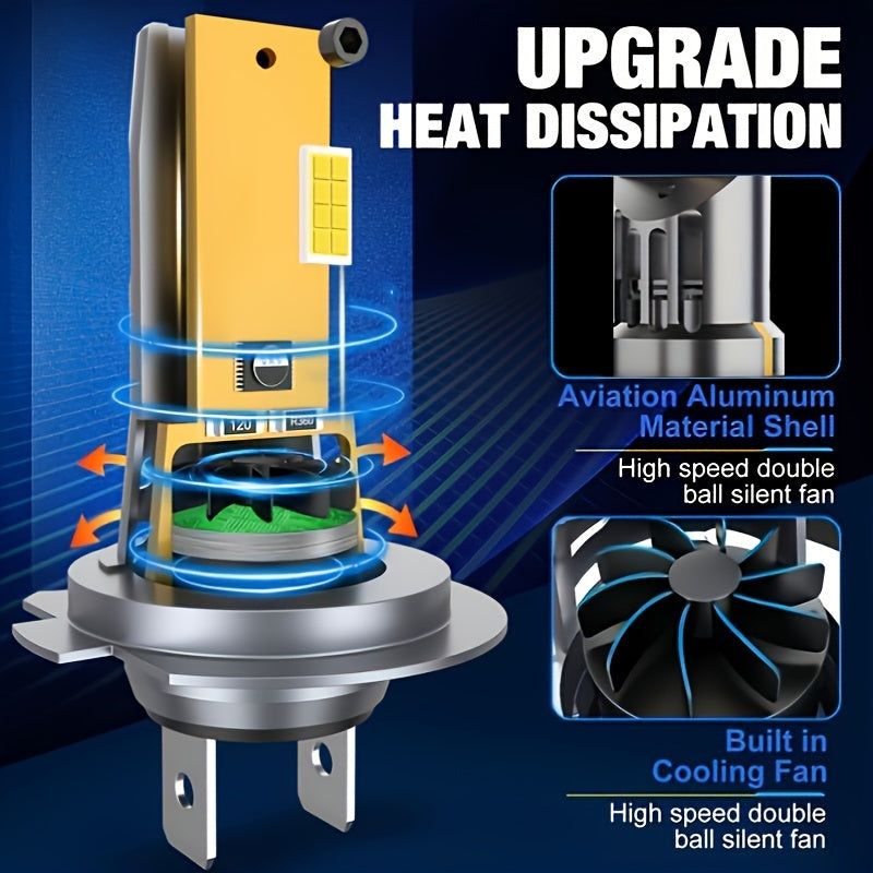 2-Pack LED Headlight Bulbs H7 30000LM Bright White Turbo Style Car Lights