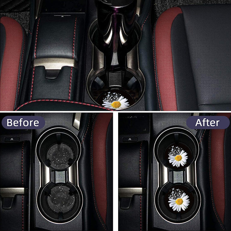 2 Pack White Daisy Butterfly Car Coasters EVA Material Water Cup Decor