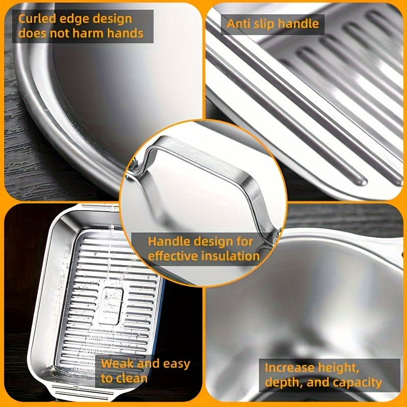 2-Piece Nonstick Stainless Steel Roasting Pan Set with Lids, Heavy-Duty Rectangular Bakeware