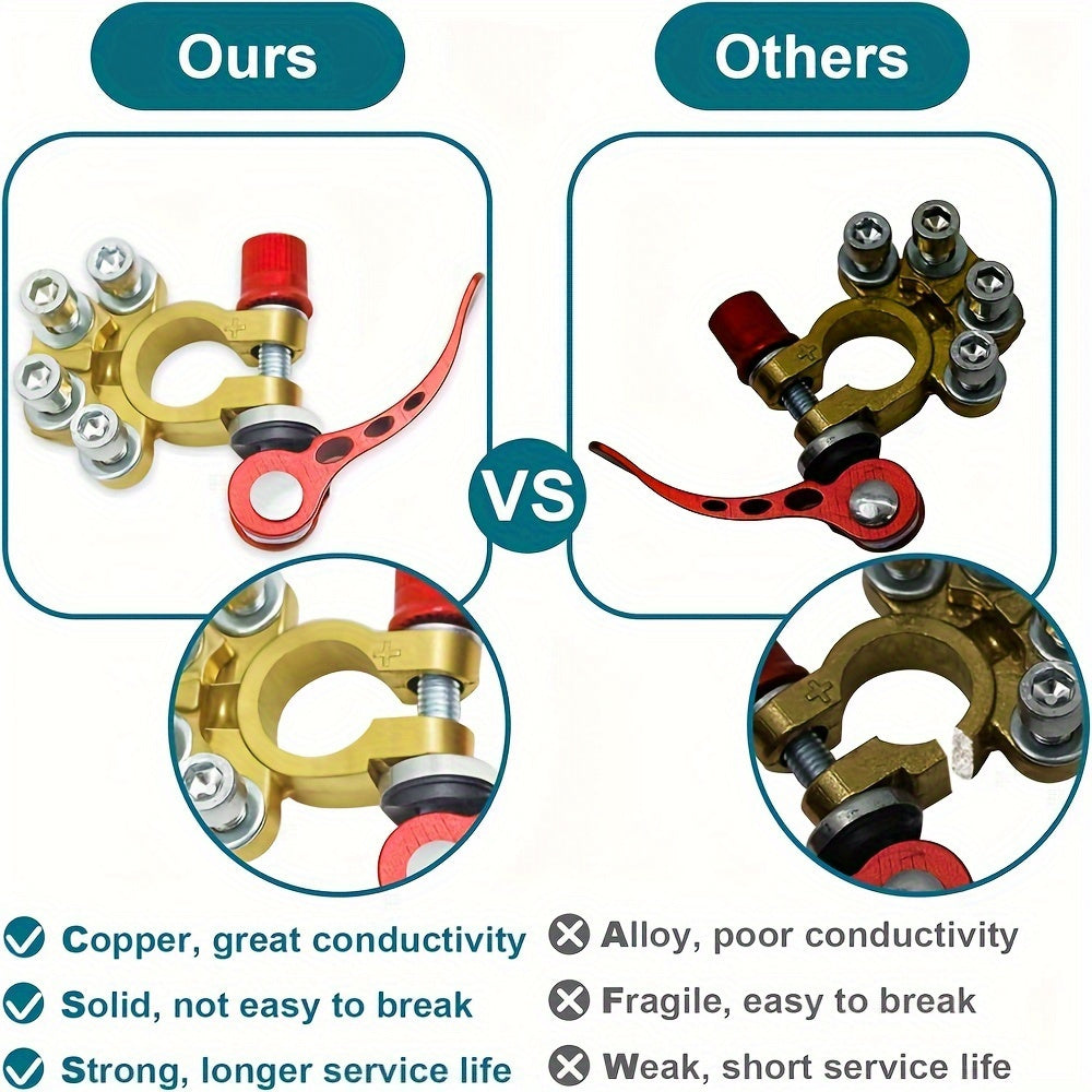 2 Pieces Copper 4-Way Quick Release Battery Terminals for SAE/JIS Posts