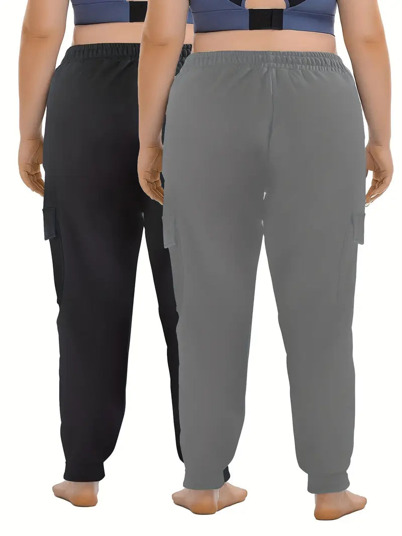 Plus Size Waterproof Work Pants with Pockets and Drawstring Waist