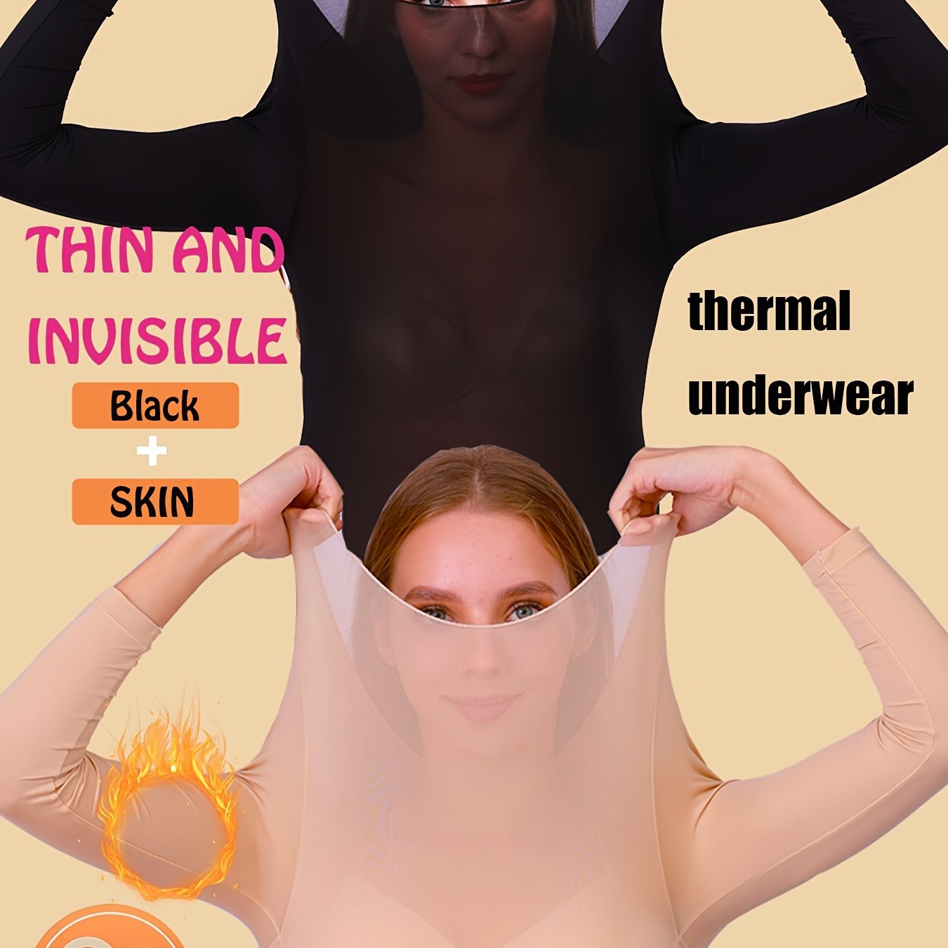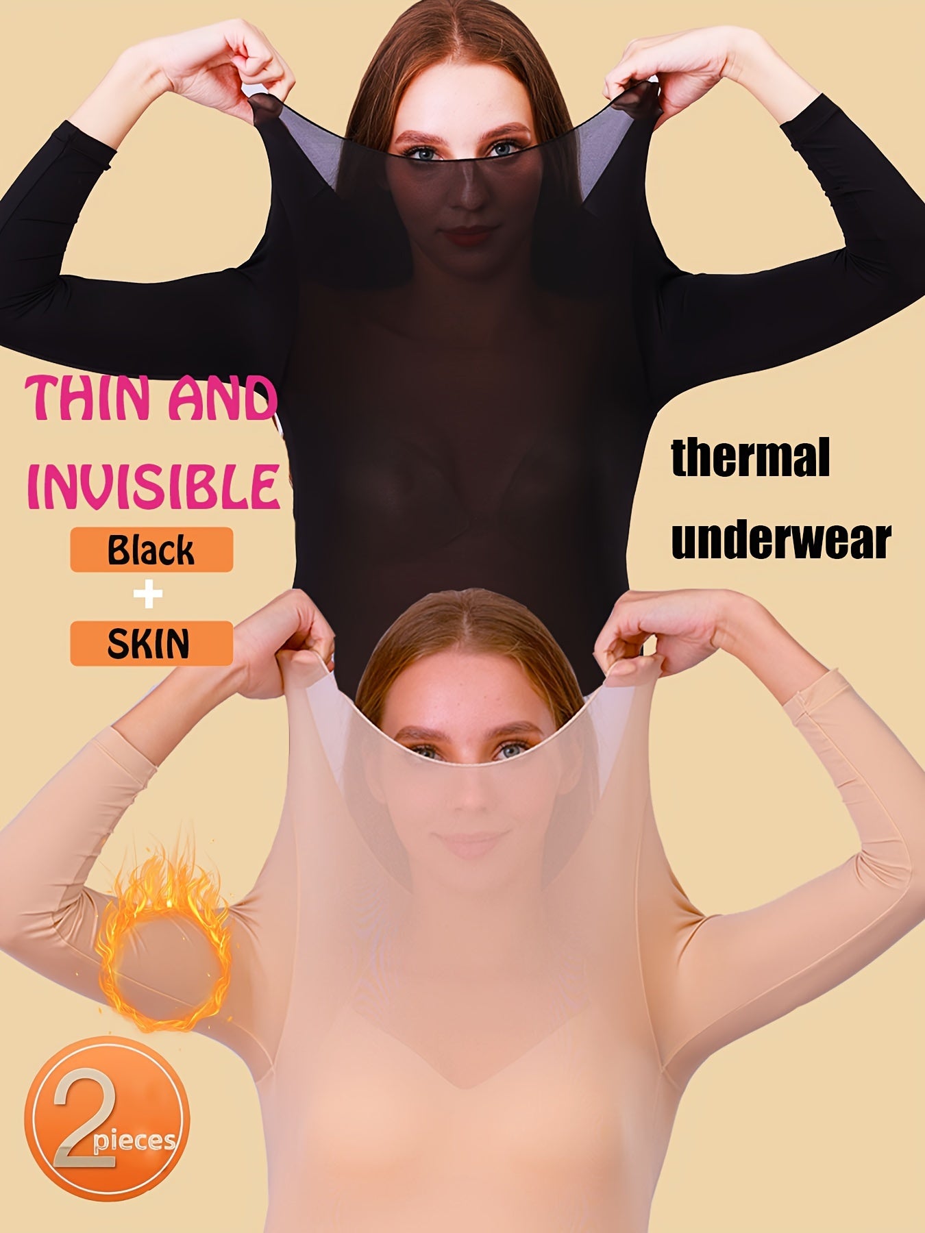 Women’s Ultra-Thin Long Sleeve Thermal Tops Set for Fall Winter Solid Color