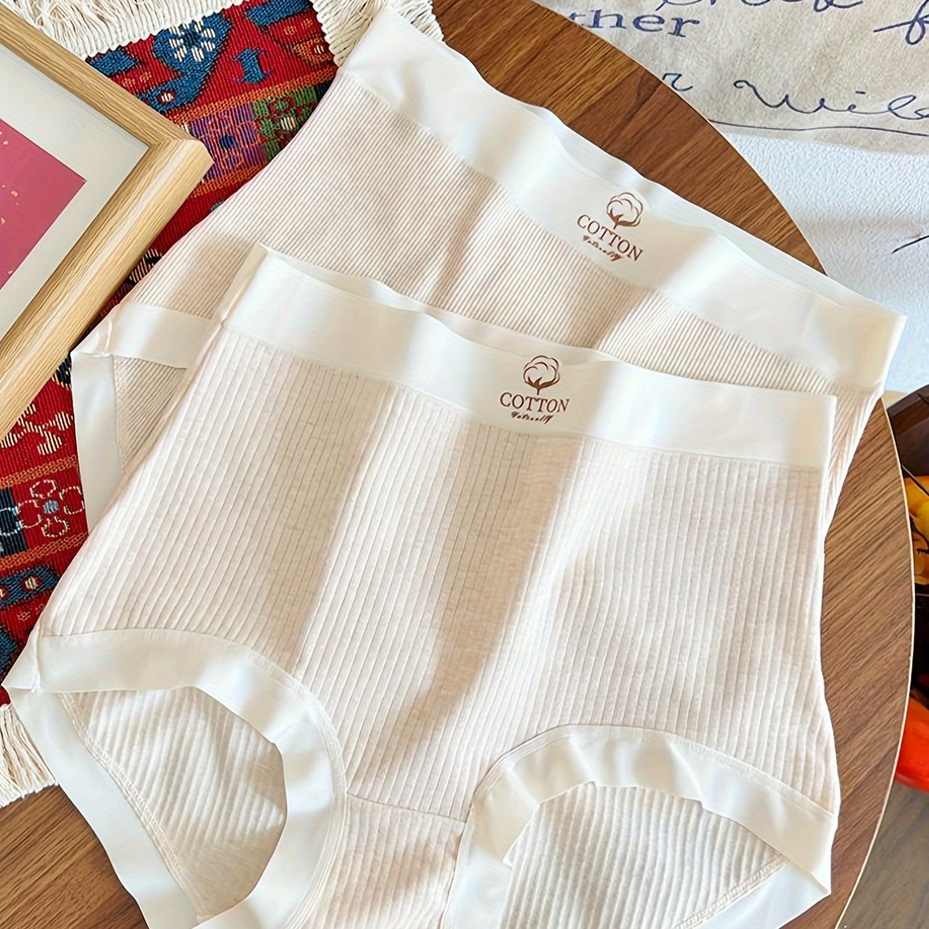 Women's Plus Size High Waist Cotton Briefs with Letter Print Ribbed Stretchy Fabric 2 Pack