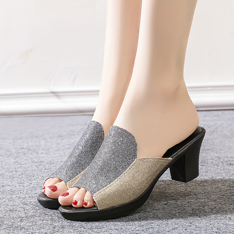 Women's Summer Sandals with Thick High Heels Open Toe Slip-On Anti-Slip Mid-Heel Fashionable