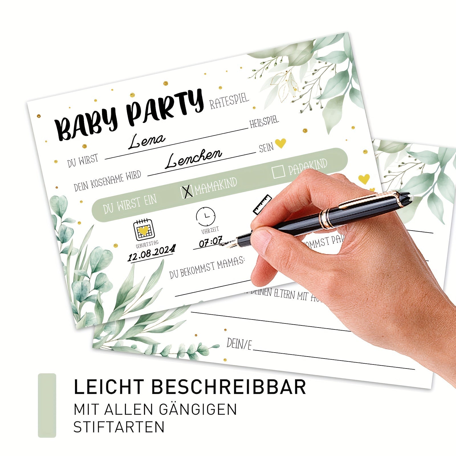 Kids Party Game Cards 25 Double-Sided Eucalyptus Gold Decoration
