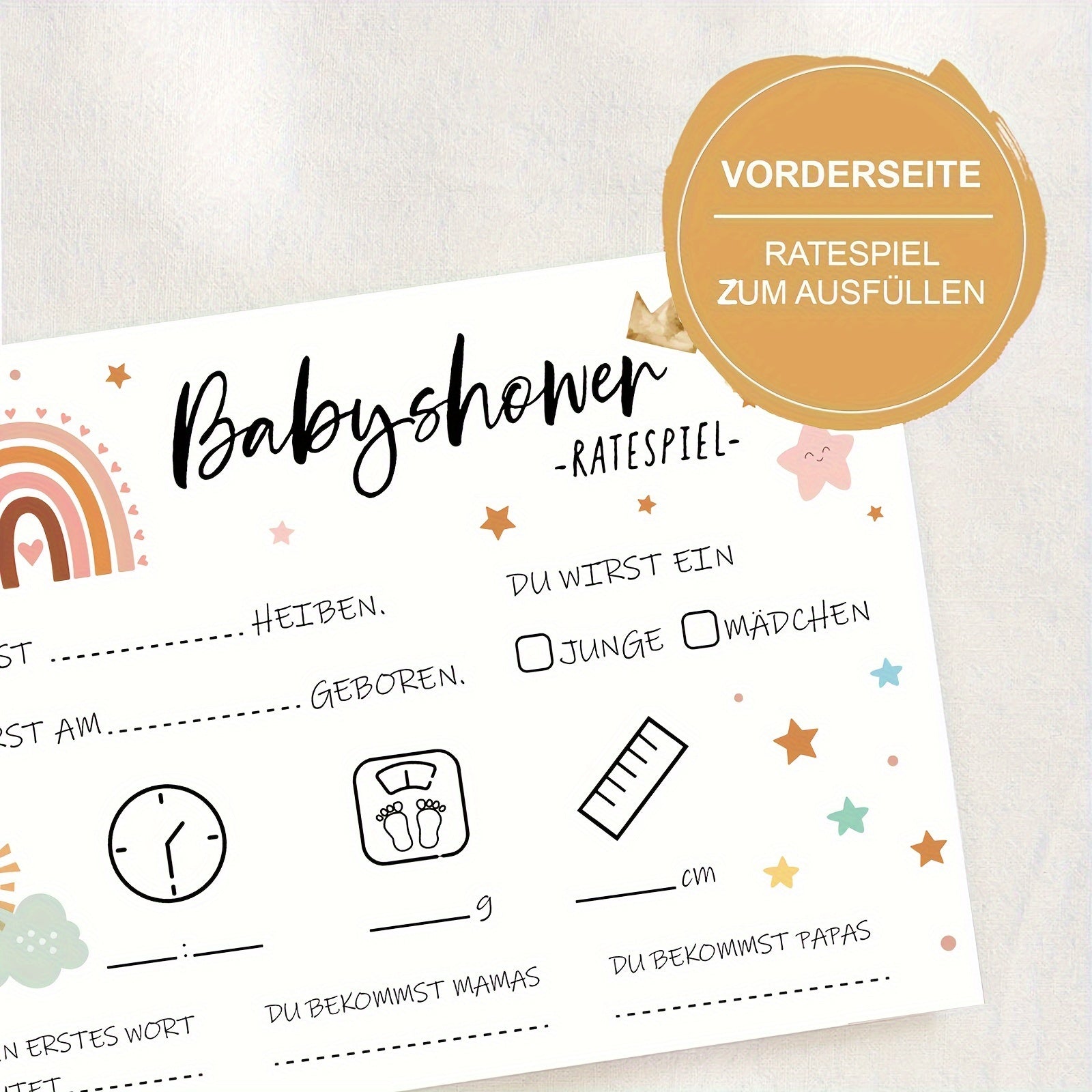 Kids Shower Quiz Game Cards for Boys and Girls Party Activity A6 Size
