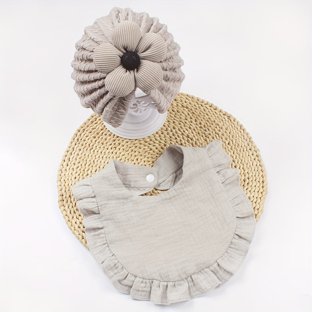 Kids Girl Floral Hat and Bib Set Soft Breathable Polyester for Casual and Birthday